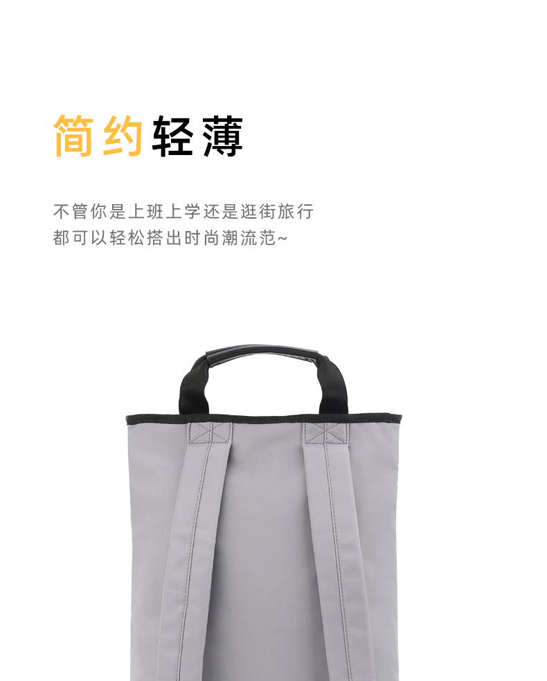 我们期待功能性,储物设计合理性,更需要颜值在线!精选绦纶面料精制而成!材质轻巧单薄,防水耐磨,其坚固耐用!内里网料设计,手感软,厚实,走线非常工整!这款可当手提包亦可以当双肩包使用!外观设计风格非常的年轻化,让整个背包看起来充满活力!