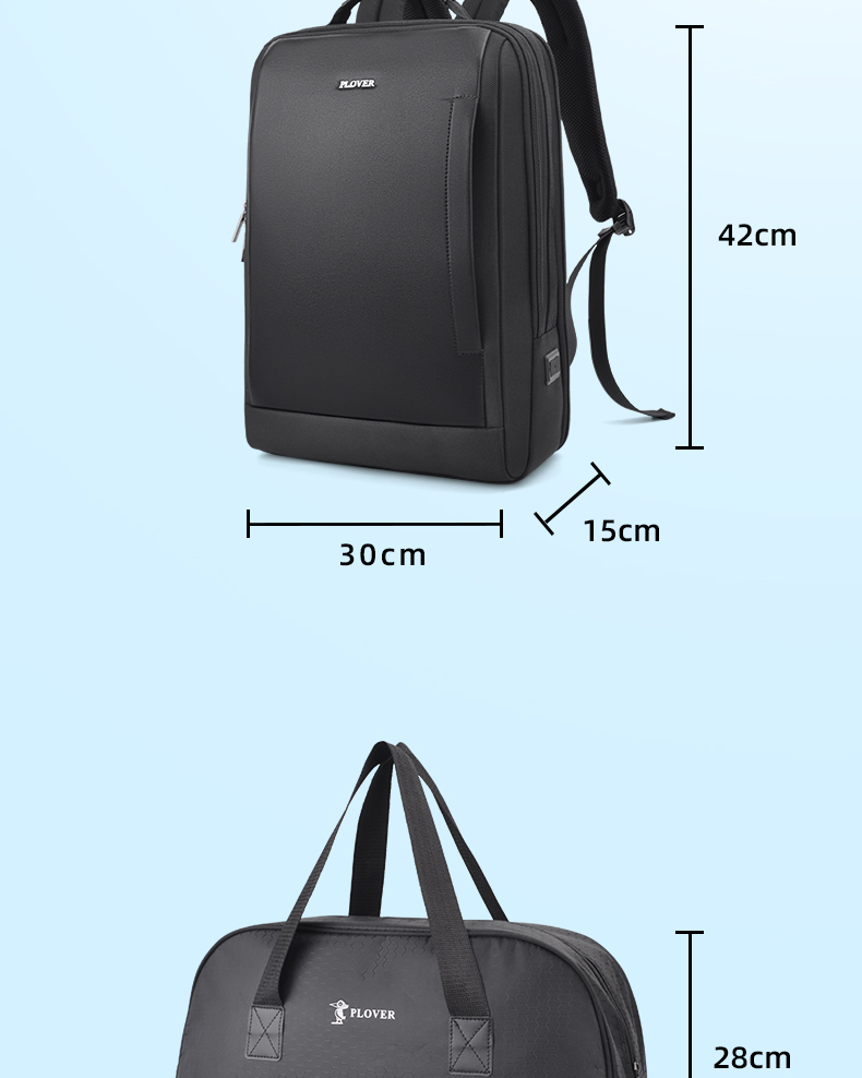 网红双肩包+旅行包 两件套商务时尚款,防泼溅材质,双肩包带USB充电设计;抗震减压电脑隔层袋,绒棉层防刮花,防抗震;包前幅隐藏侧拉链袋,隐秘性更强;隐藏式水杯位,大容量收纳空间;