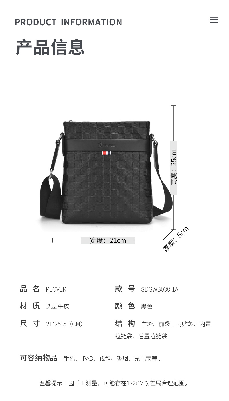 • PLOVER香港啄木鸟压花方格花样单肩包斜跨包日字包GDGWB038-1A