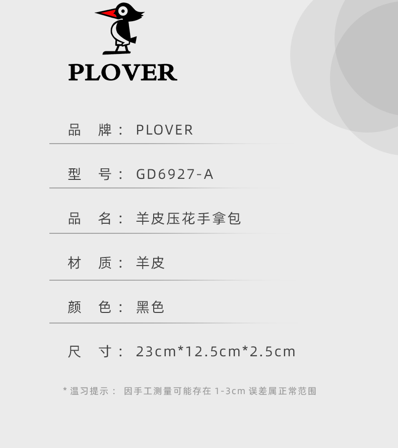 • PLOVER香港啄木鸟羊皮手包 GD6927-A