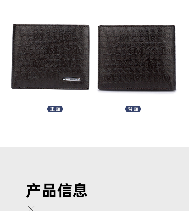 钱包采用特优级头层牛皮制作,压花设计,搭配靓丽品牌金属,压印品牌LOGO,工艺采用内车线工艺