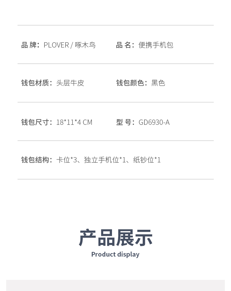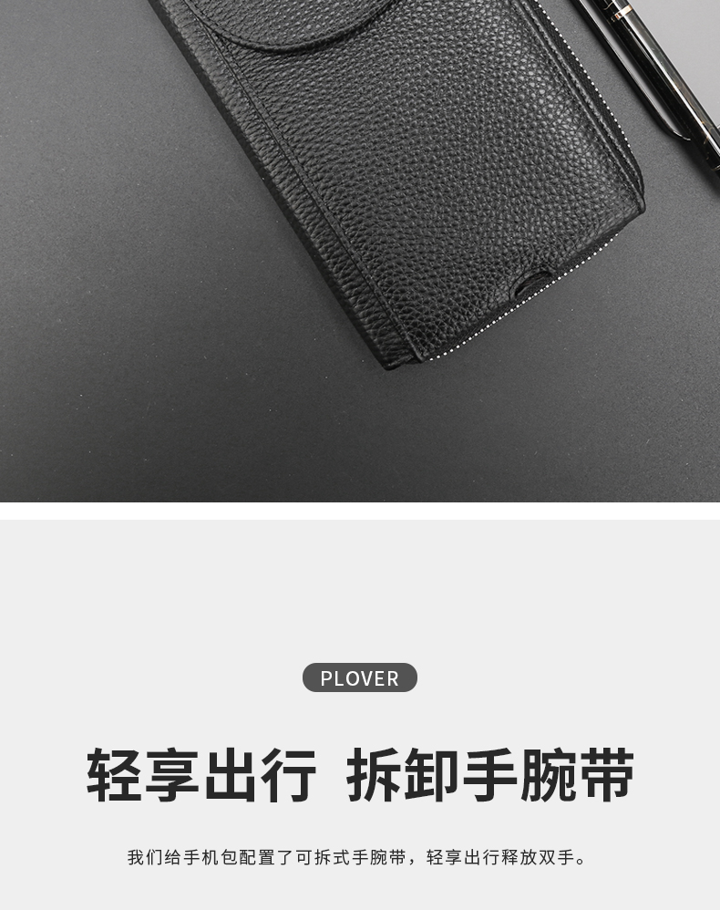 手机包首先有一个优点,就是非常的便捷·精致和小巧,版型时尚!精选优质的头层牛皮精制而成,手感柔和,皮料纹路优雅大气上档次!内置银行卡卡位,充电宝位置预留手机充电孔位,手机轻松连接充电宝,超级便捷!空间容量大,可拆卸手腕带!既有实用性又兼具颜值的手机包!