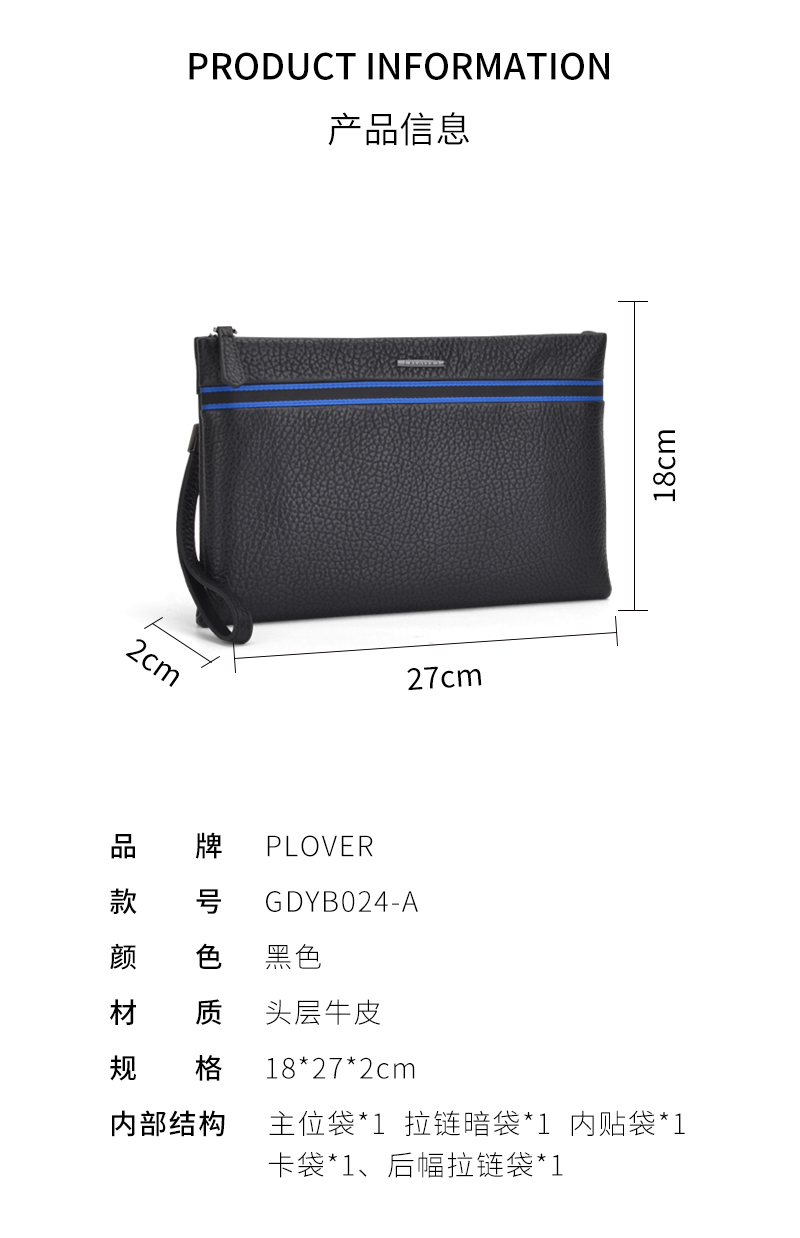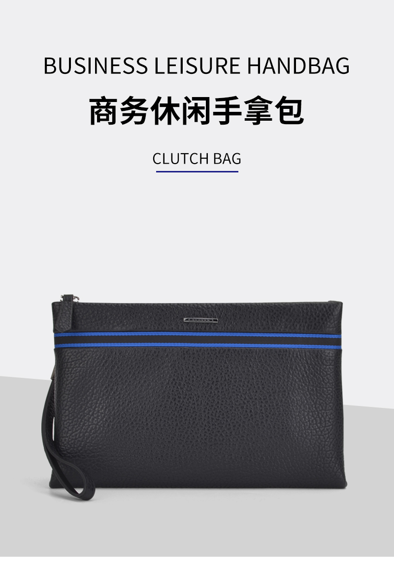 PLOVER香港啄木鸟蓝条织带牛皮夹包 GDYB024-A
