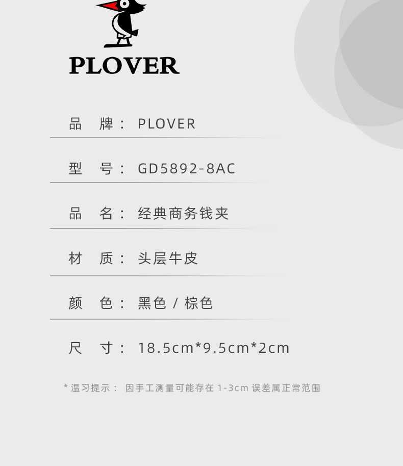 • PLOVER香港啄木鸟长款收纳钱包西装包 GD5892-8AC