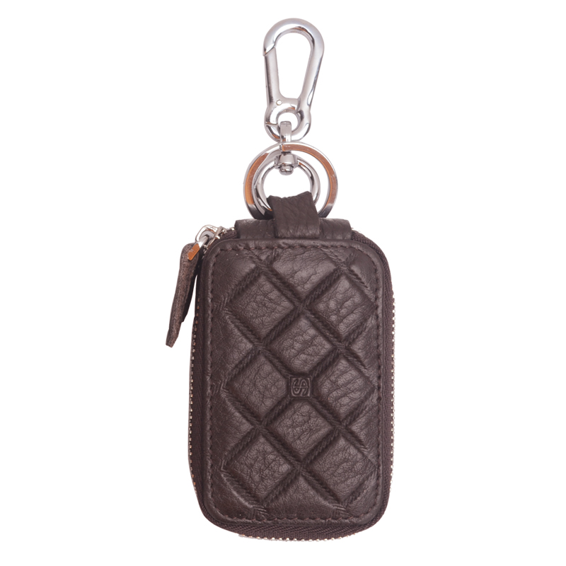 采用进口头层牛皮制作,高温热压印几何纹路,时尚金属拉链,精选五金厚扣,简单实用内里结构,特备防滑可拆卸的钥匙链扣链