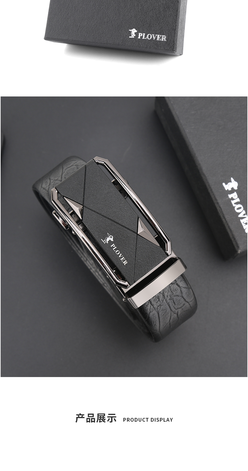 带身手感柔软耐用,纹理精致细腻。扣头采用锌合金真空电镀工艺,两边镂空设计新颖!隐藏式车线工艺,高温耐变形夹层,产品紧实,环保,更耐用!