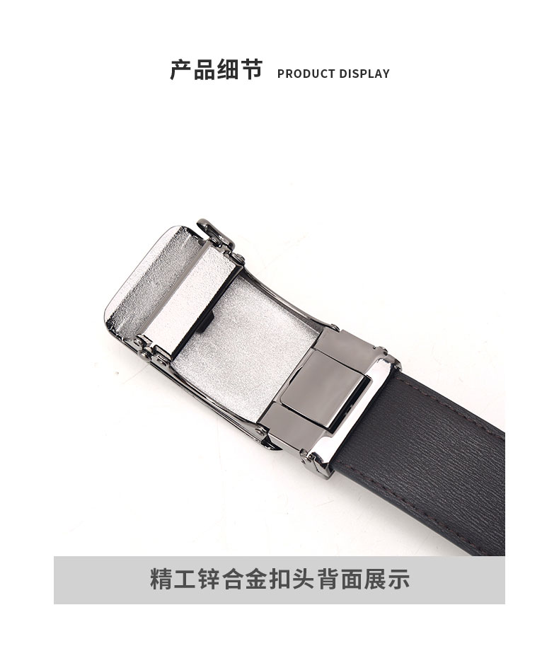 带身面皮采用“耐刮耐磨”擦的柔软平细牙签纹二层皮, 外观细密柔软!搭配锌合金扣头,带身两边油边设计,走线工整,无缝连接、构想更增添立体感!款式简洁,高端大气有档次!