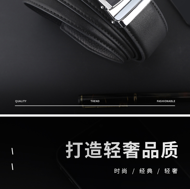 圈住爱的温度,和你一样出色!扣头采用锌合金真空电镀工艺,持久耐用。搭配金色品牌LOGO的点缀,带身采用高品质头层牛皮打造