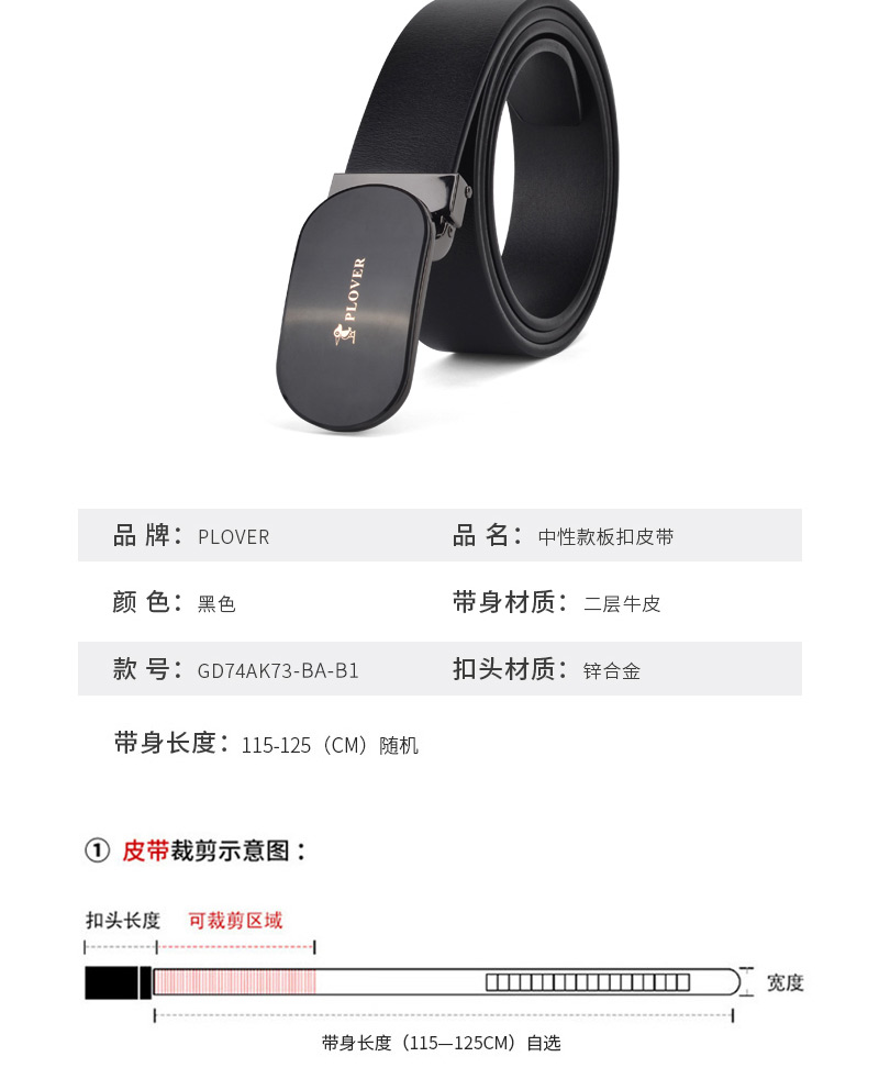 • PLOVER香港啄木鸟真皮腰带中性款板扣皮带GD74AK73-BA-B1