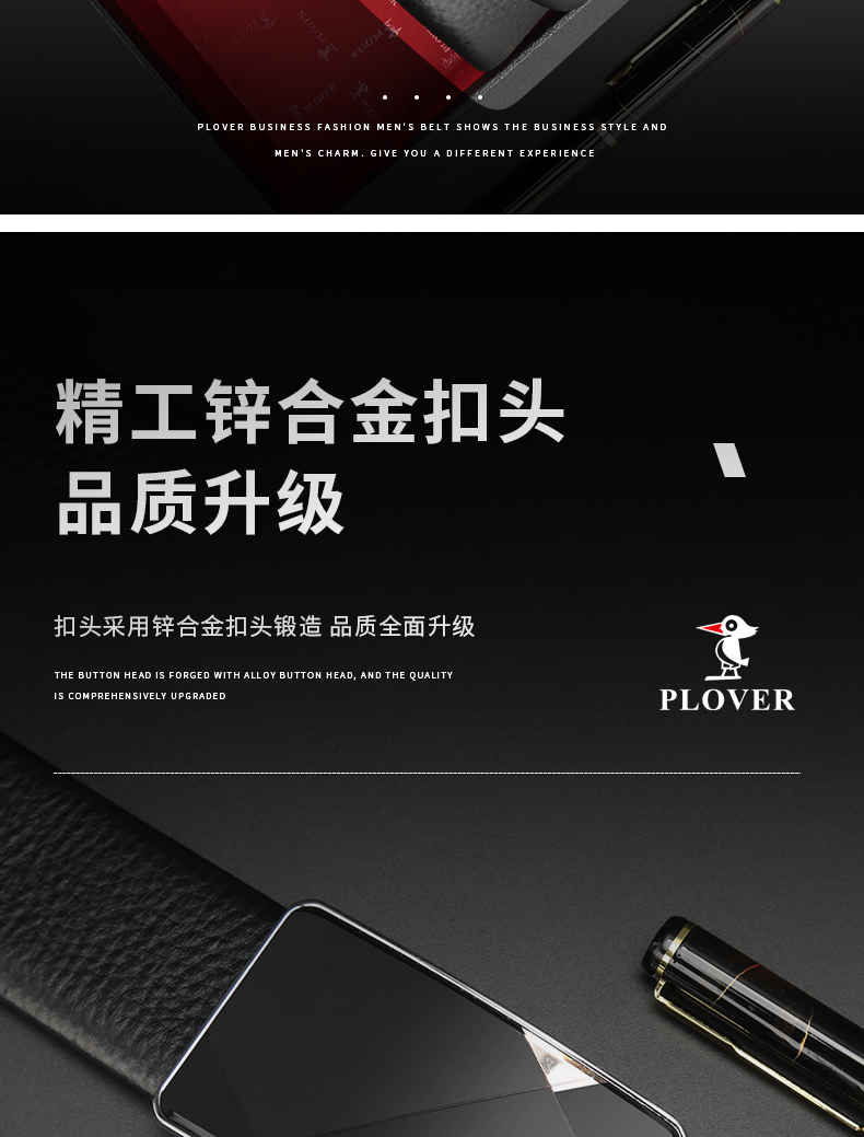 PLOVER香港啄木鸟真皮腰带头层牛皮皮带GD07AD117-DA-B2