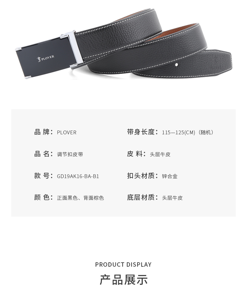 • PLOVER香港啄木鸟男士真皮扳扣皮带头层牛皮腰带GD19AK16-BA-B1
