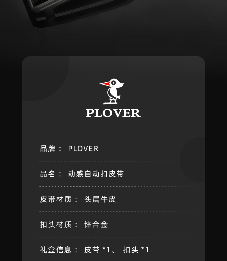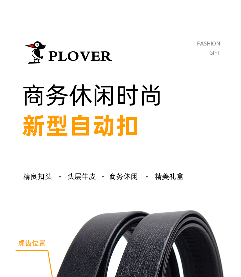PLOVER香港啄木鸟动感真皮腰带头层牛皮自动扣皮带GD507AK502-DA-B1/GD507AK503-DA-B1