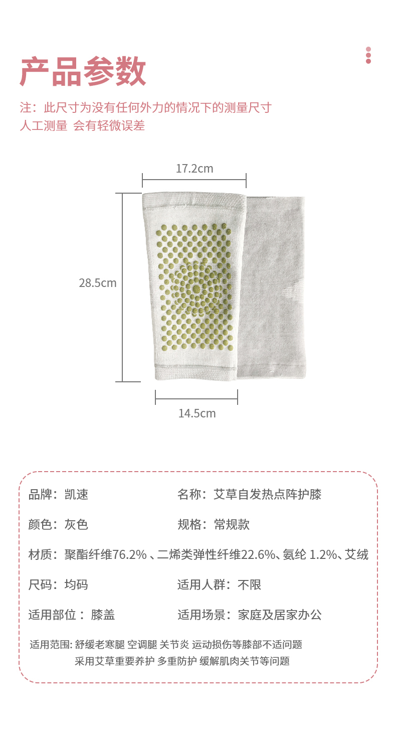 凯速艾草自发热点阵护膝 灰色 KP03