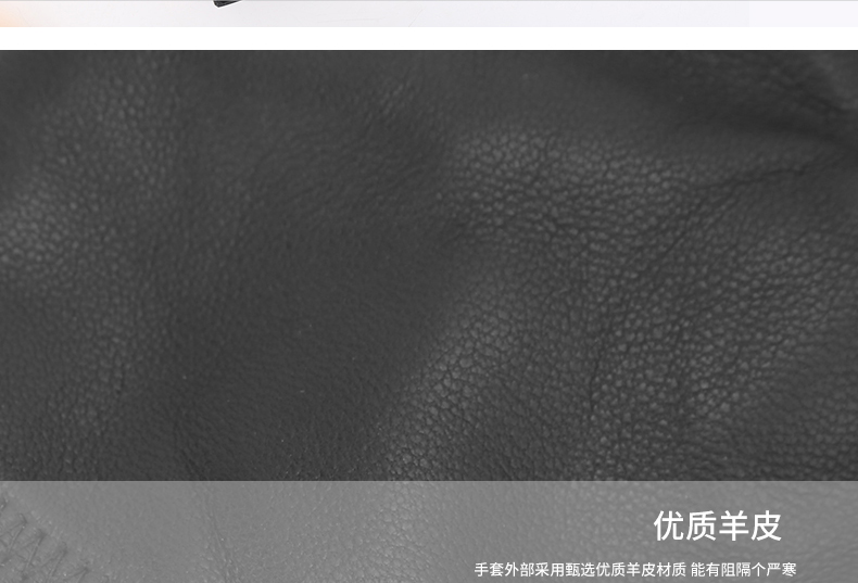 手套的面料选用优质柔软的羊皮,触感柔软顺滑。加绒密度更强更细密,有效抵挡寒风,保暖更胜一筹。款式新颖,做工精美,款式简洁大方!---不可触屏