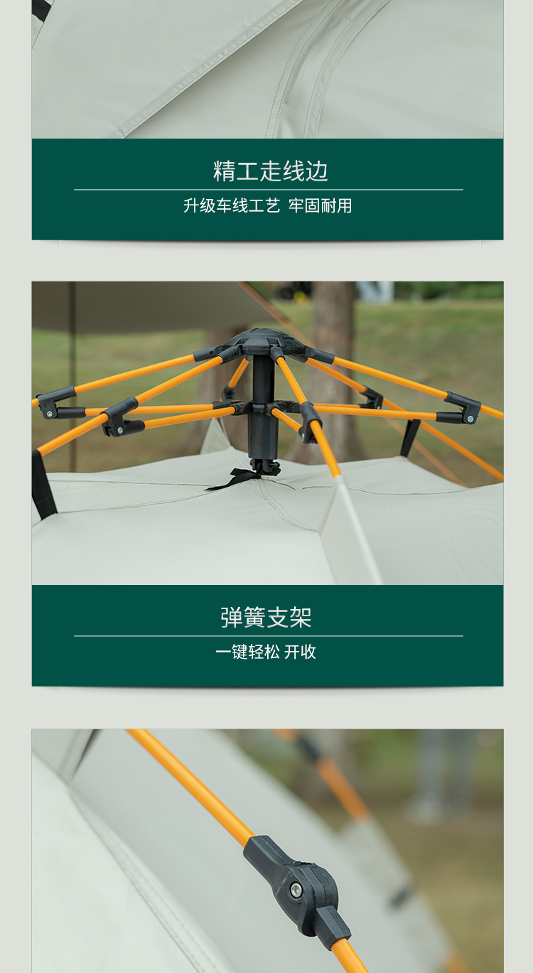 配件:帐篷*1、帐篷包*1、扣子*4、防风绳*4、地钉*8