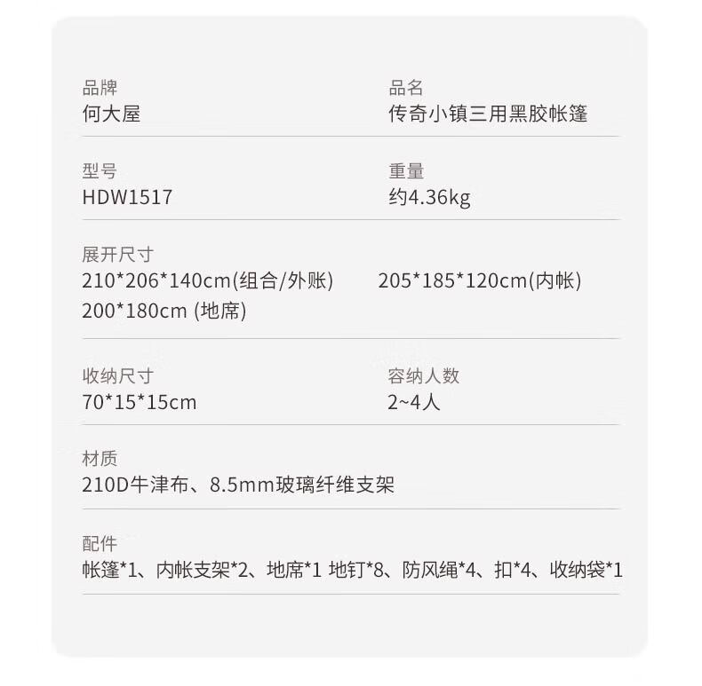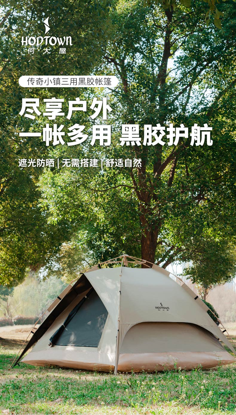 何大屋传奇小镇三用黑胶帐篷HDW1517