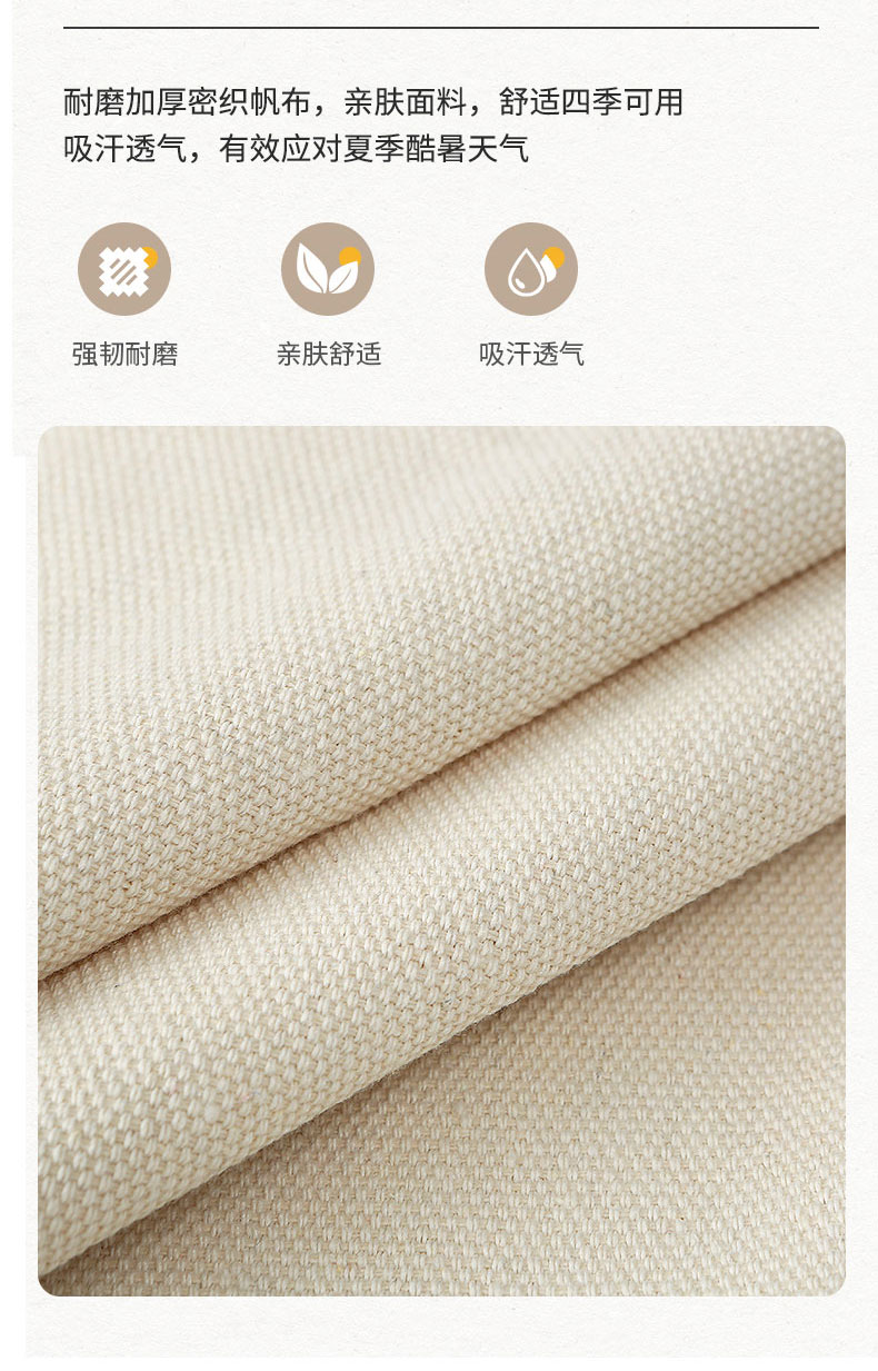强韧帆布,加厚耐磨,吸汗透气,柔软舒适。