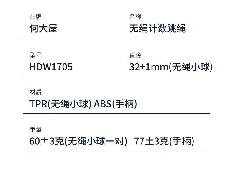 重量:60±3g(无绳小球一对),77±3g(手柄一对)
