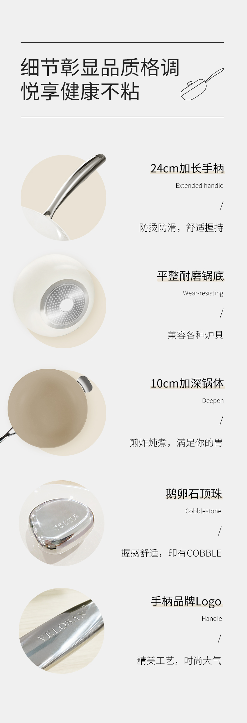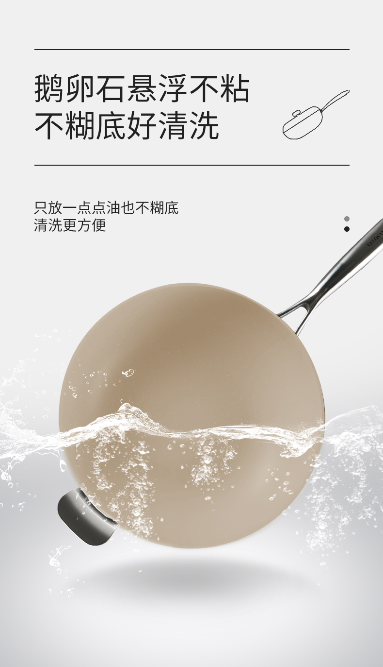 采用悬浮不粘技术,炒菜丝滑,内外不粘。