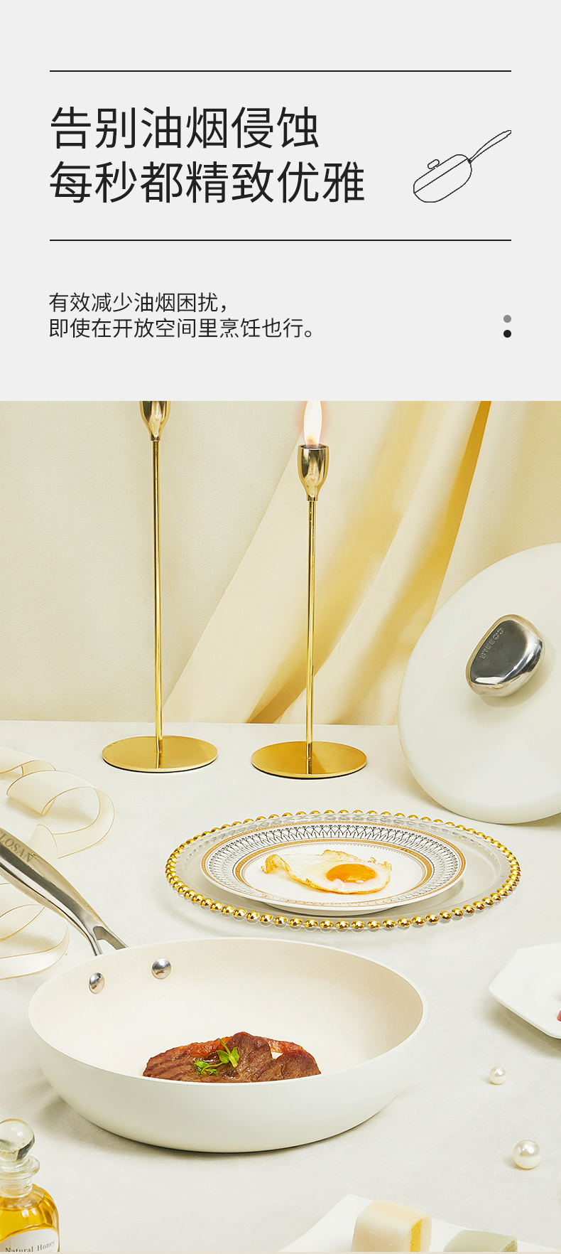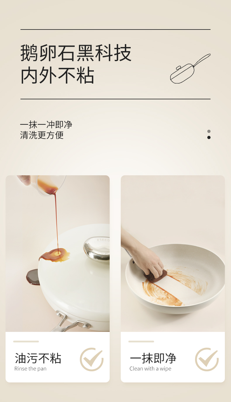 采用悬浮不粘技术,炒菜丝滑,丝毫不粘。