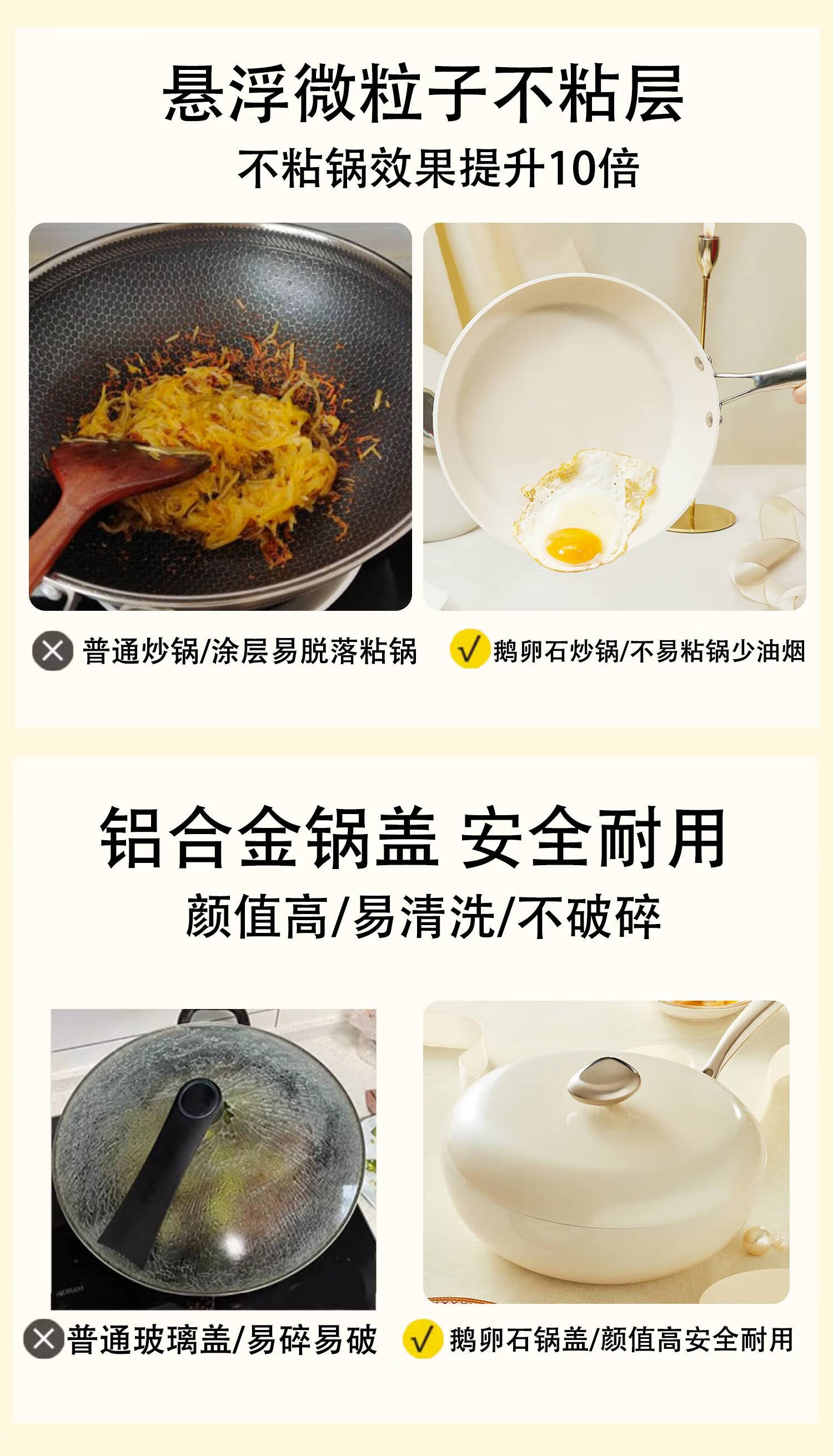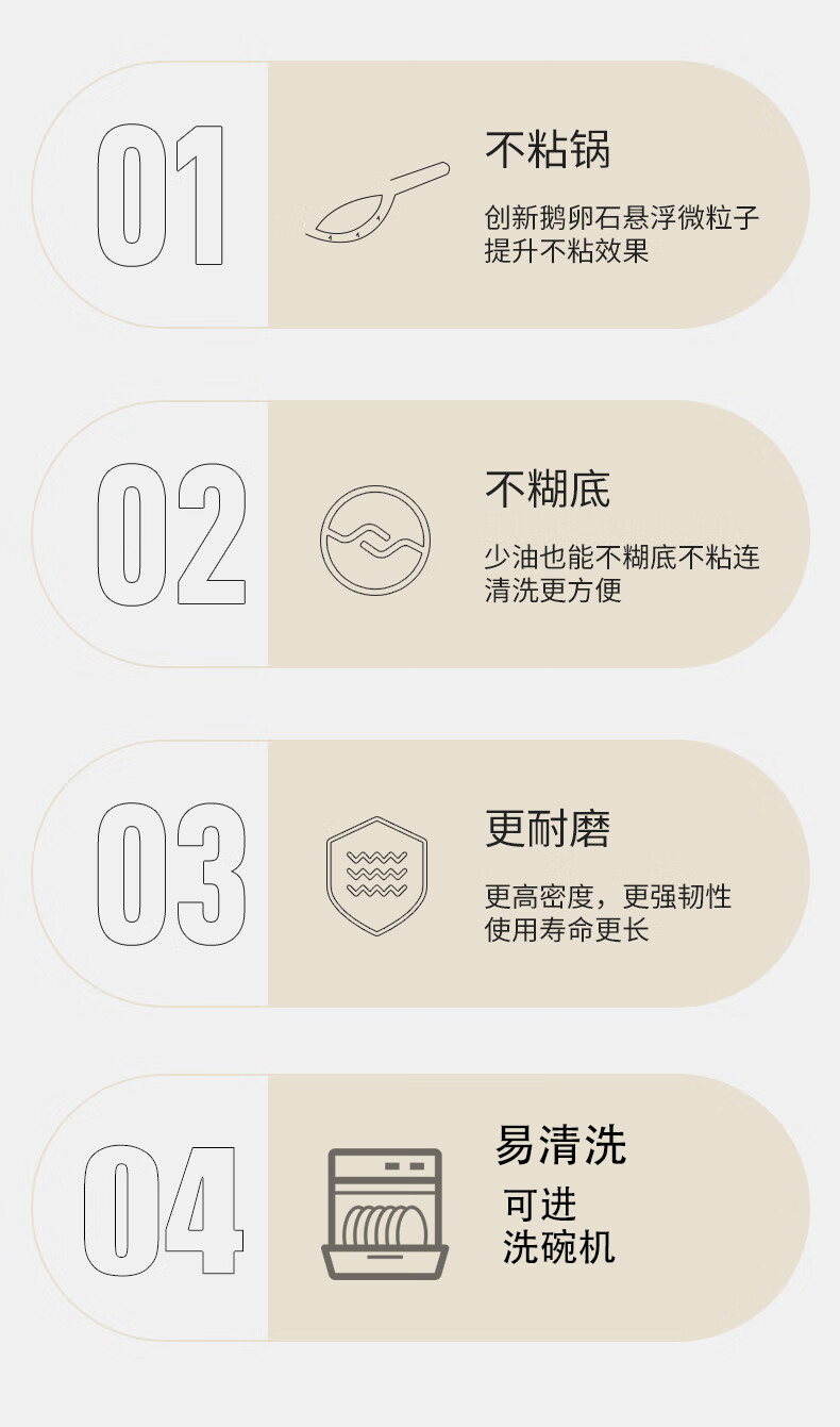 采用悬浮不粘技术,炒菜丝滑,丝毫不粘。