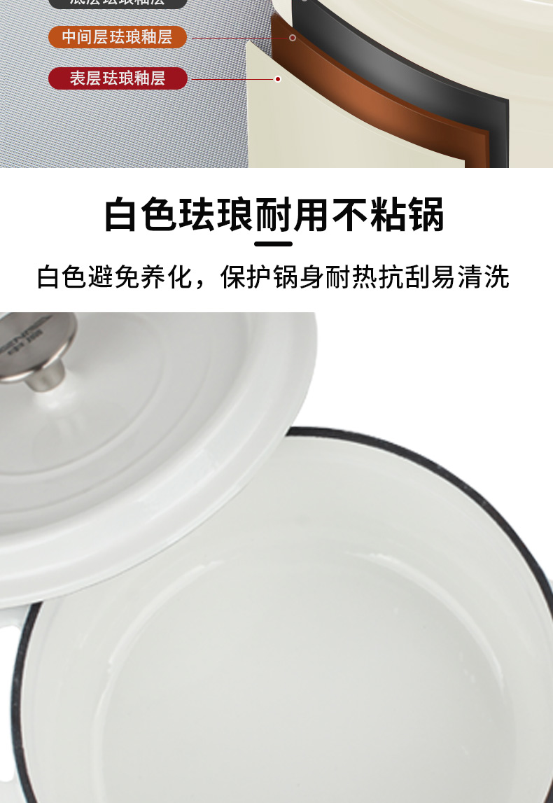 三层珐琅釉层,坚固耐用,光洁易清洗。