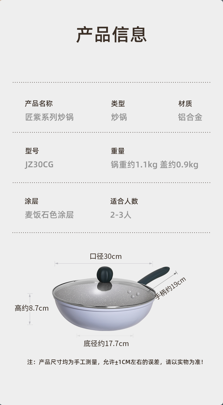 炊大皇匠紫系列麦饭石炒锅30cmJZ30CG