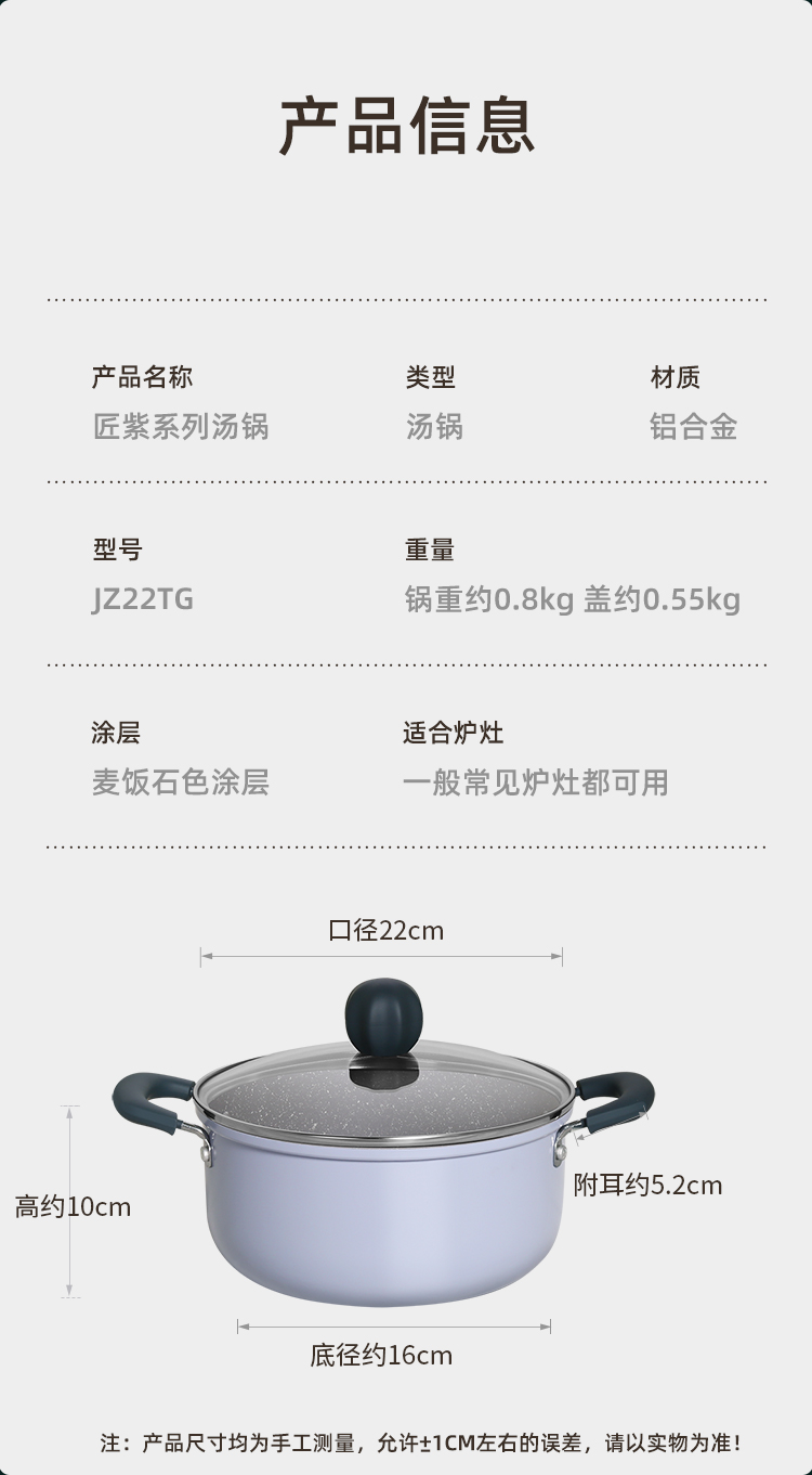 炊大皇匠紫系列麦饭石汤锅22cmJZ22TG