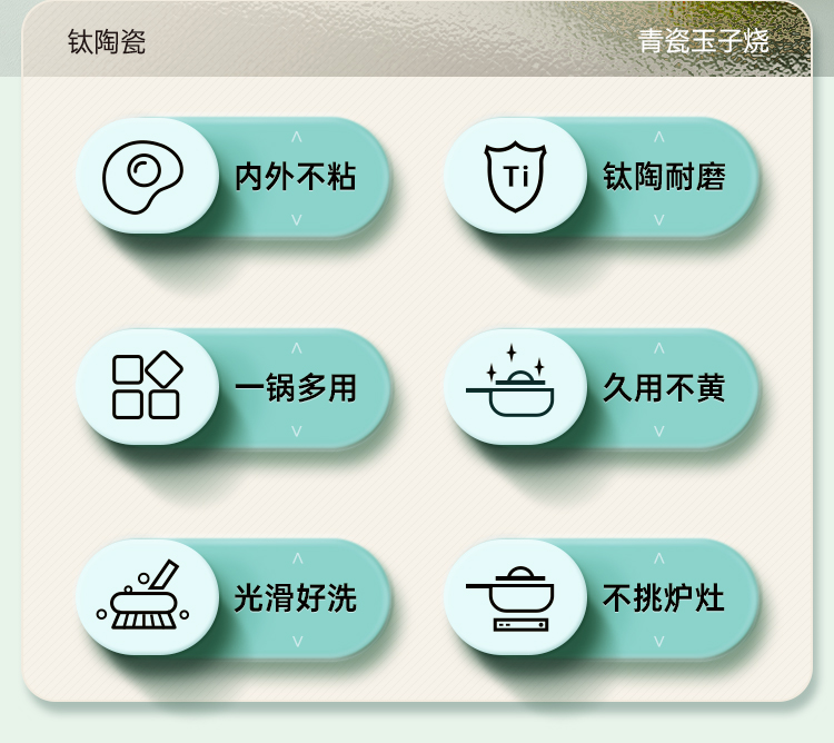 3、钛陶瓷不粘锅0氟更健康,煎鱼不破皮煎蛋好成型,不含氟吃的更健康小火烹饪,慢享生活。