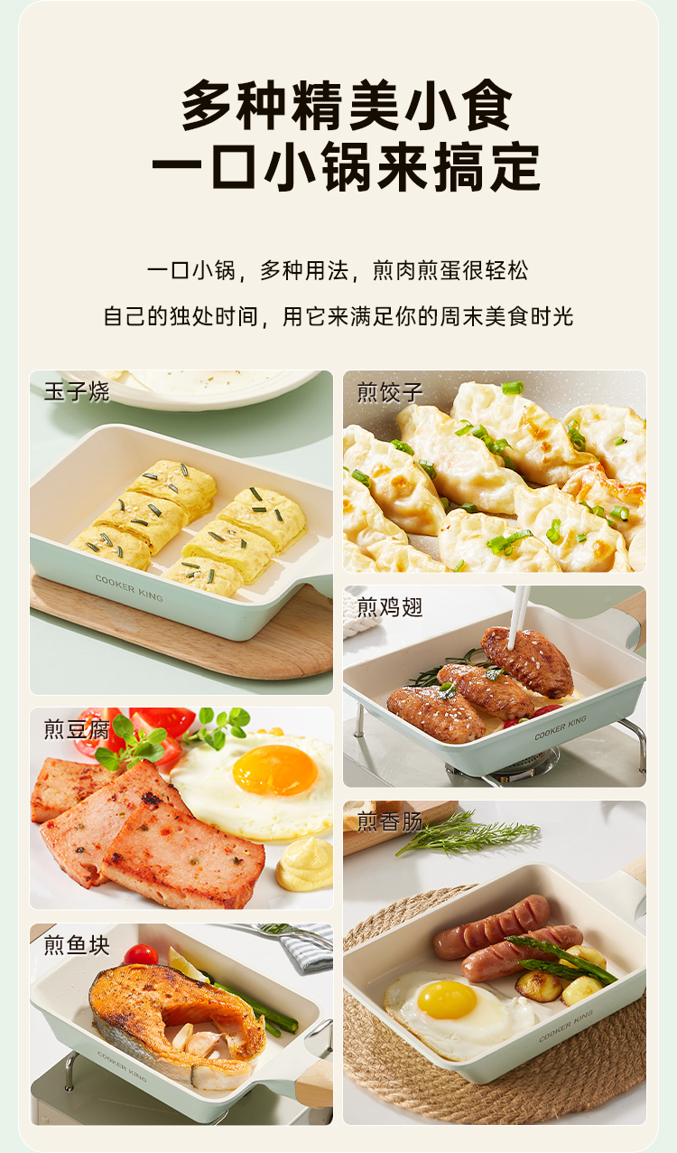 1、有钛陶瓷更健康卷出美味蛋烧,内外不粘一体压铸耐磨好洗。