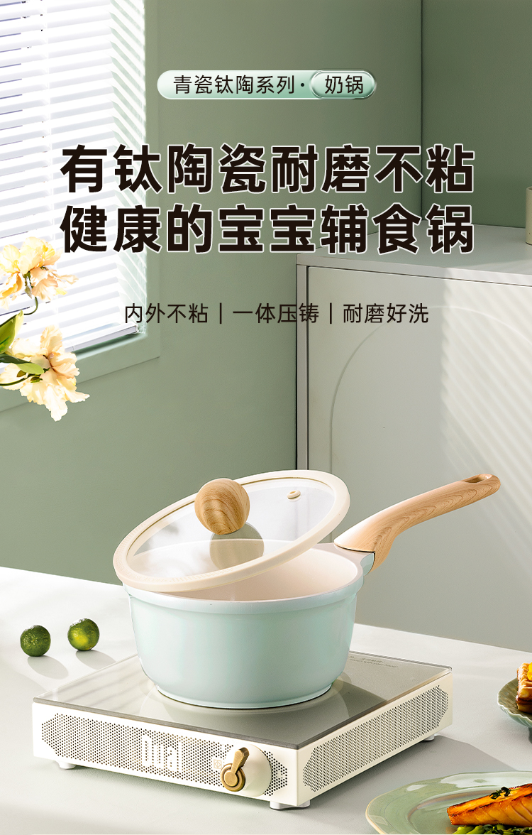 1、有钛陶瓷耐磨不粘健康的宝宝辅食锅。