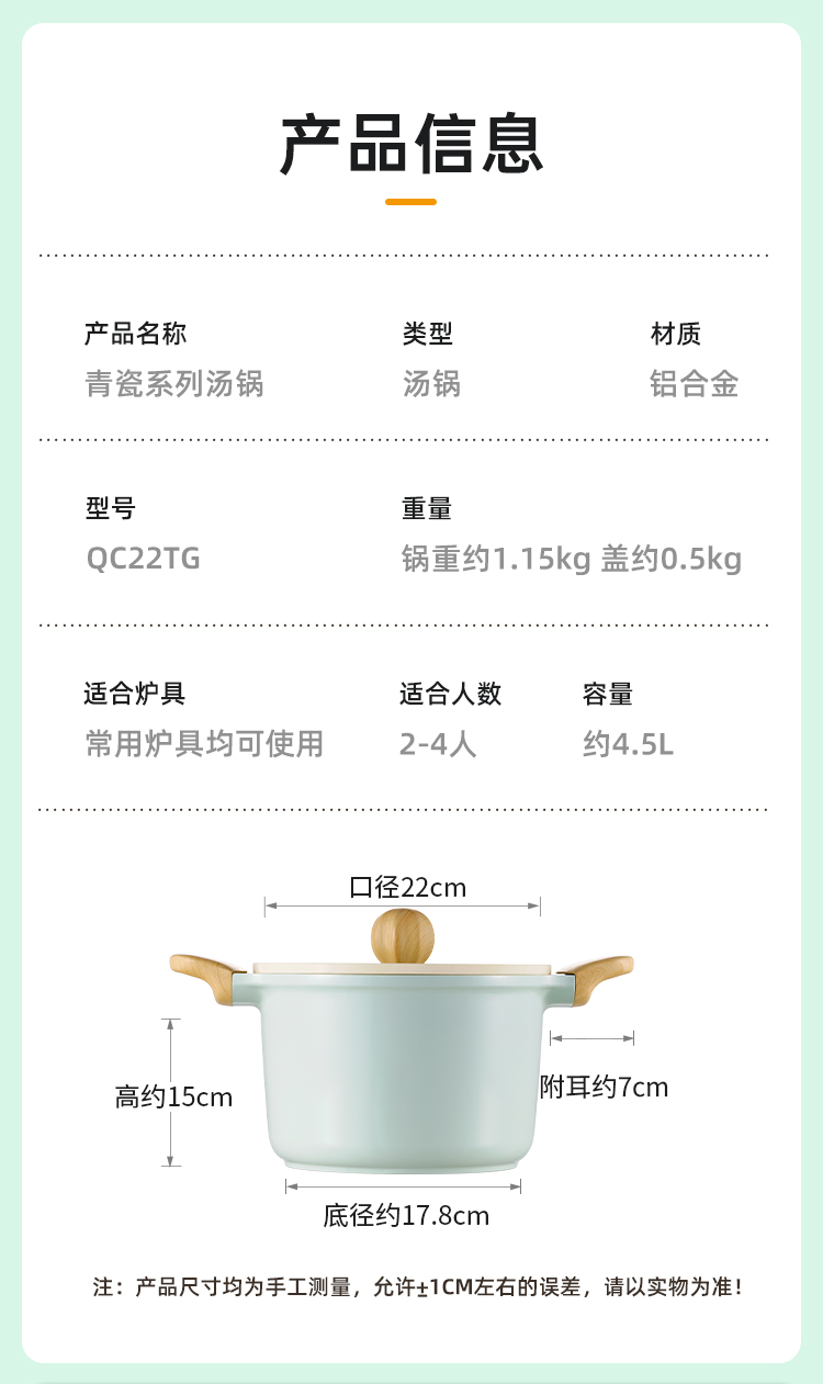 炊大皇青瓷不粘汤锅22cmQC22TG