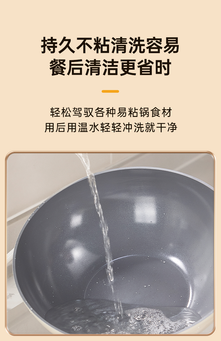 3、炉灶全兼容换灶不换锅,持久不粘清洗容易餐后清洁更省时。