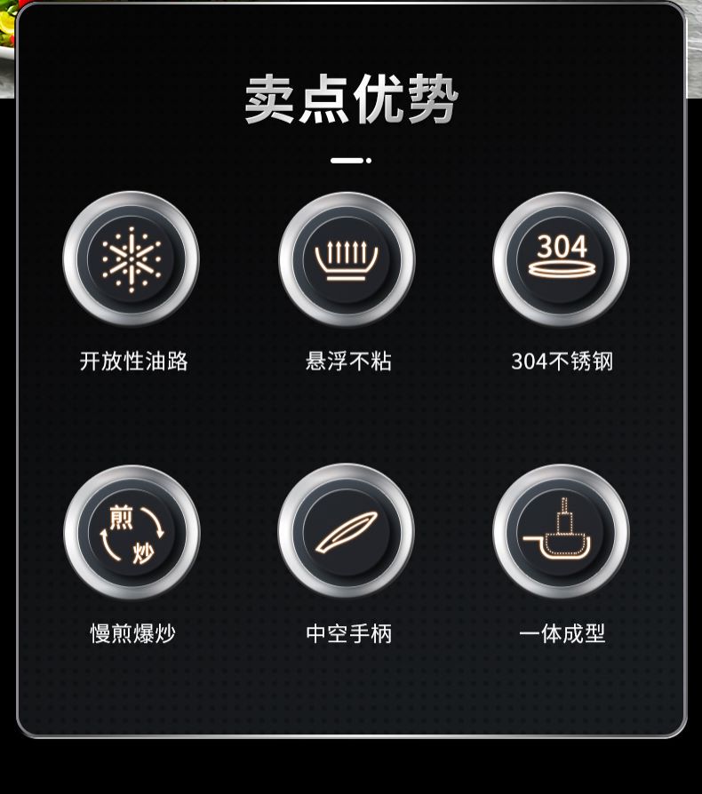 1、加深蜂窝纹防粘实力派,锅内蜂窝全新纹理开放性,全射频浮刻技术,油路通畅更省油。