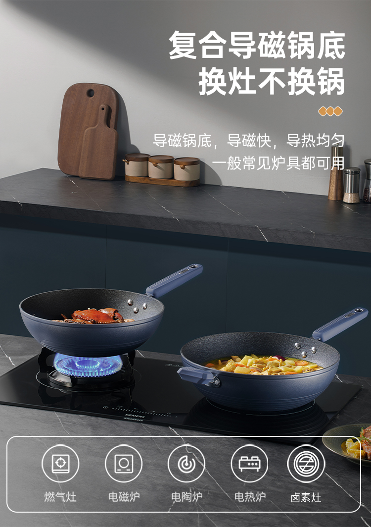 炊大皇谷里深蓝无油烟炒锅32cmSL32CG