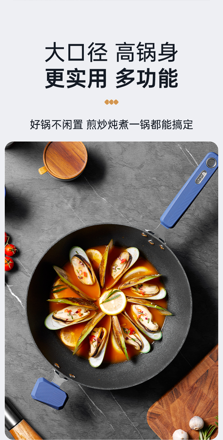 炊大皇谷里深蓝无油烟炒锅34cmSL34CG