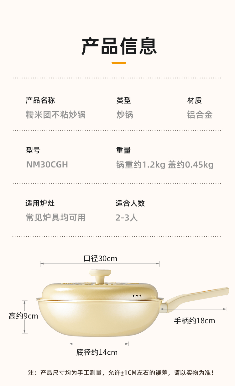 炊大皇糯米团不粘炒锅30cm(黄色)NM30CGH