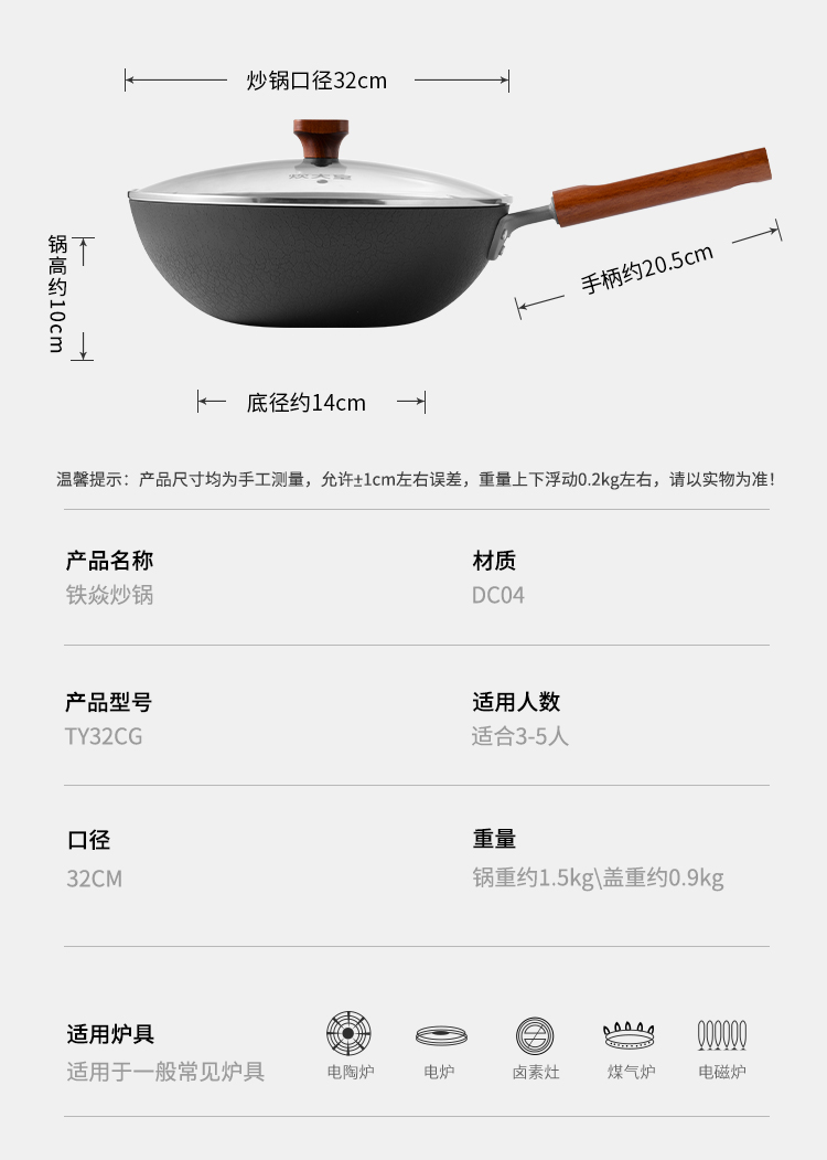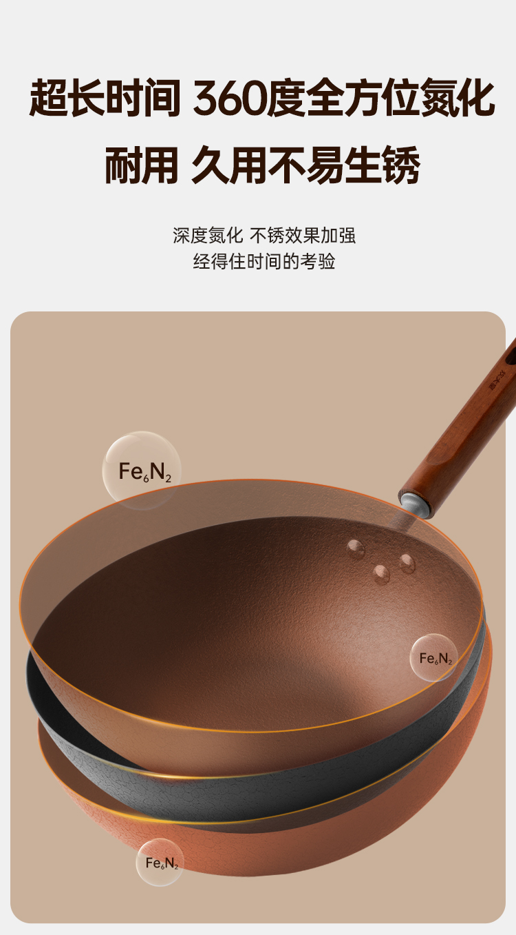 1、严选精铁真正的0涂层铁焱炒锅,疏油纹路,轻便好掂。