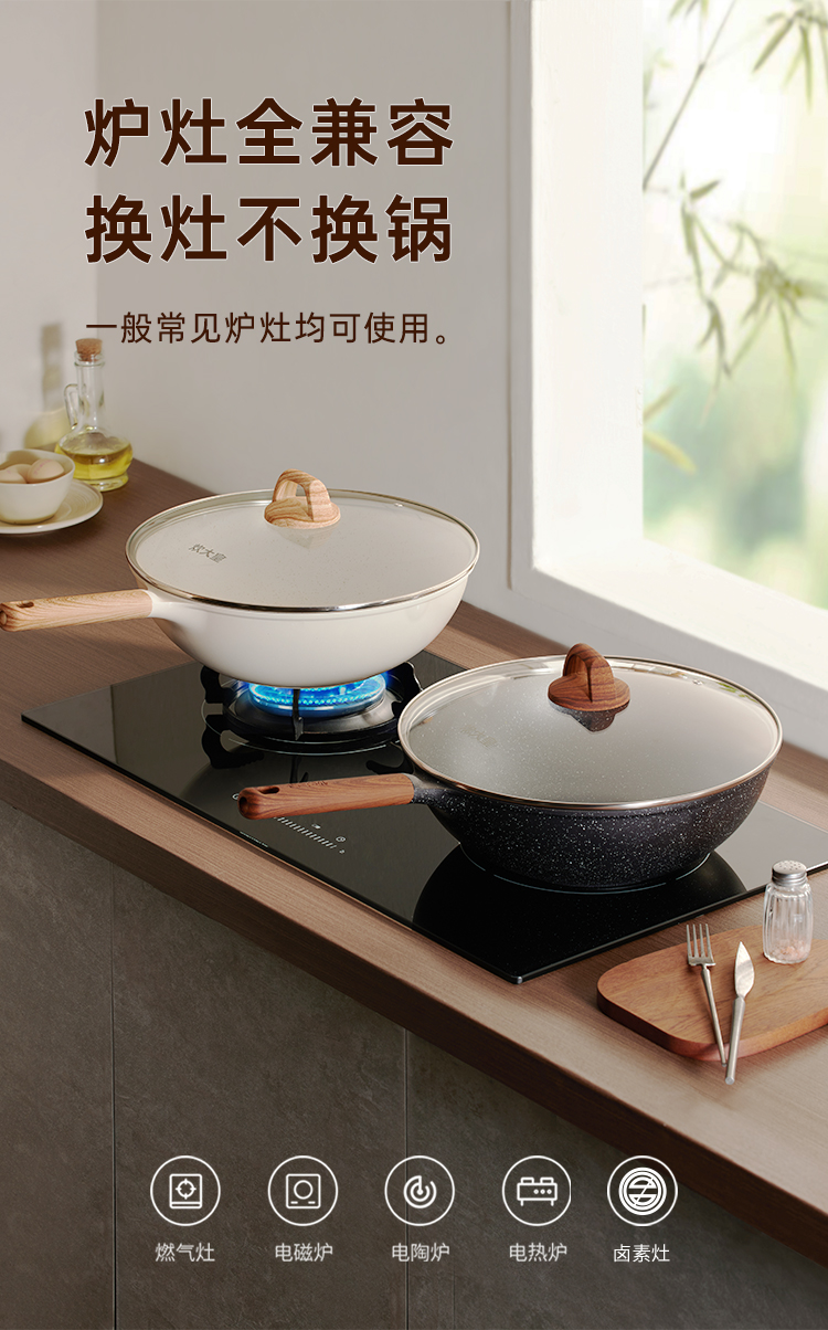 炊大皇高级麦饭石色炒锅32cm(白色)GJ32CGB