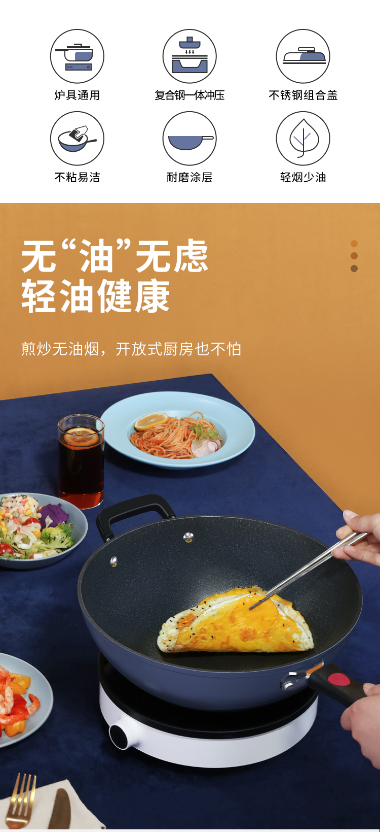 3、健康不粘涂层,不粘锅轻松烹饪,小白下厨so easy,能煎善煮的多用锅