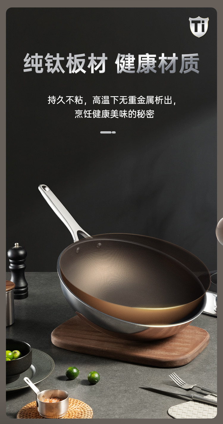 1、0涂层钛健康无重金属|物理不粘纯钛不粘更健康。