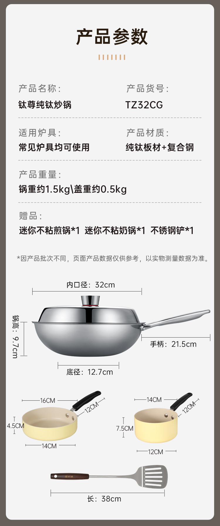炊大皇钛尊纯钛炒锅32cmTZ32CG
