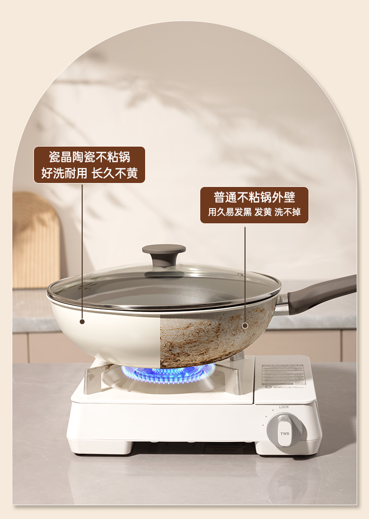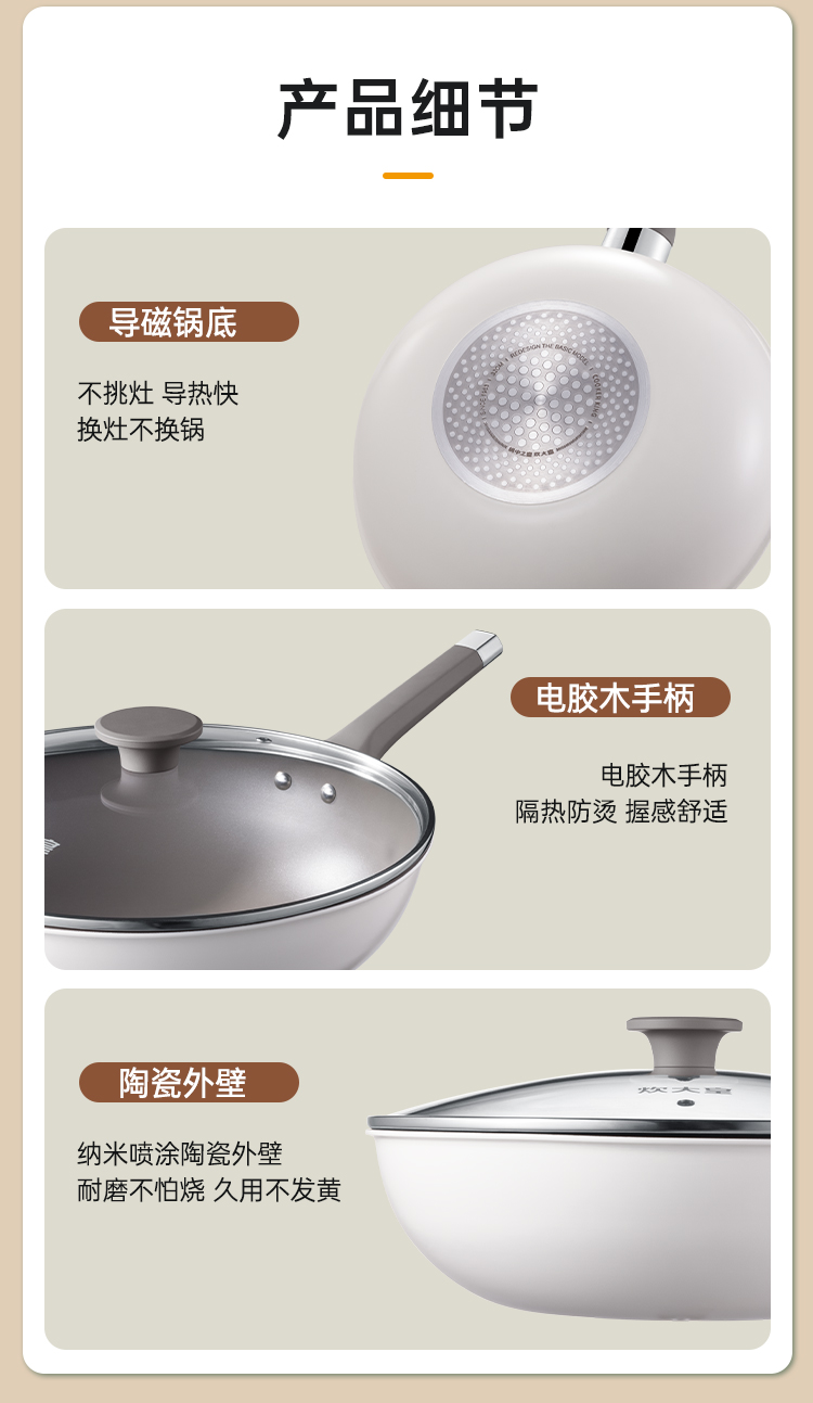 3、内外不粘清洗容易外壁久用不发黄,电胶木手柄隔热防烫握感舒适。