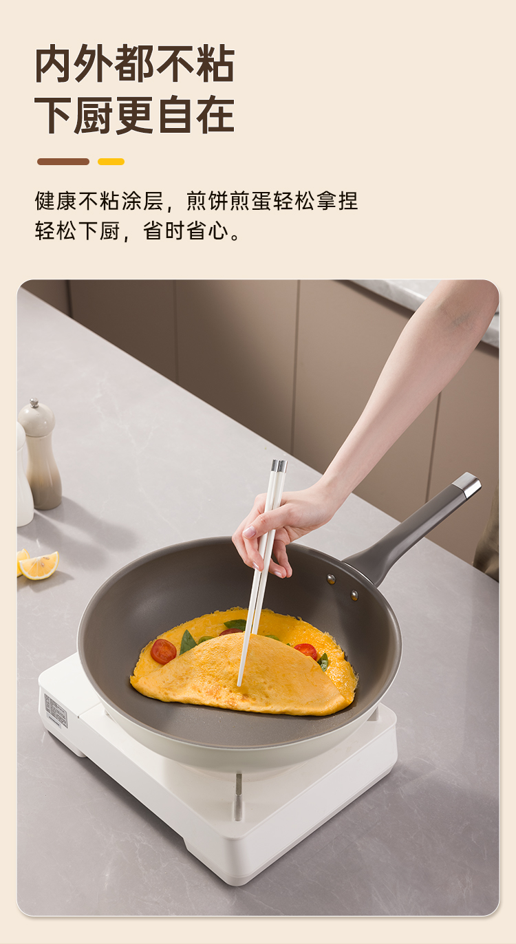 1、健康不粘涂层,纳米喷涂陶瓷外壁耐磨不怕烧久用不发黄,煎饼煎蛋轻松拿捏轻松下厨,省时省心,锅身轻便,掂锅不累下厨做美食,轻松拿捏。
