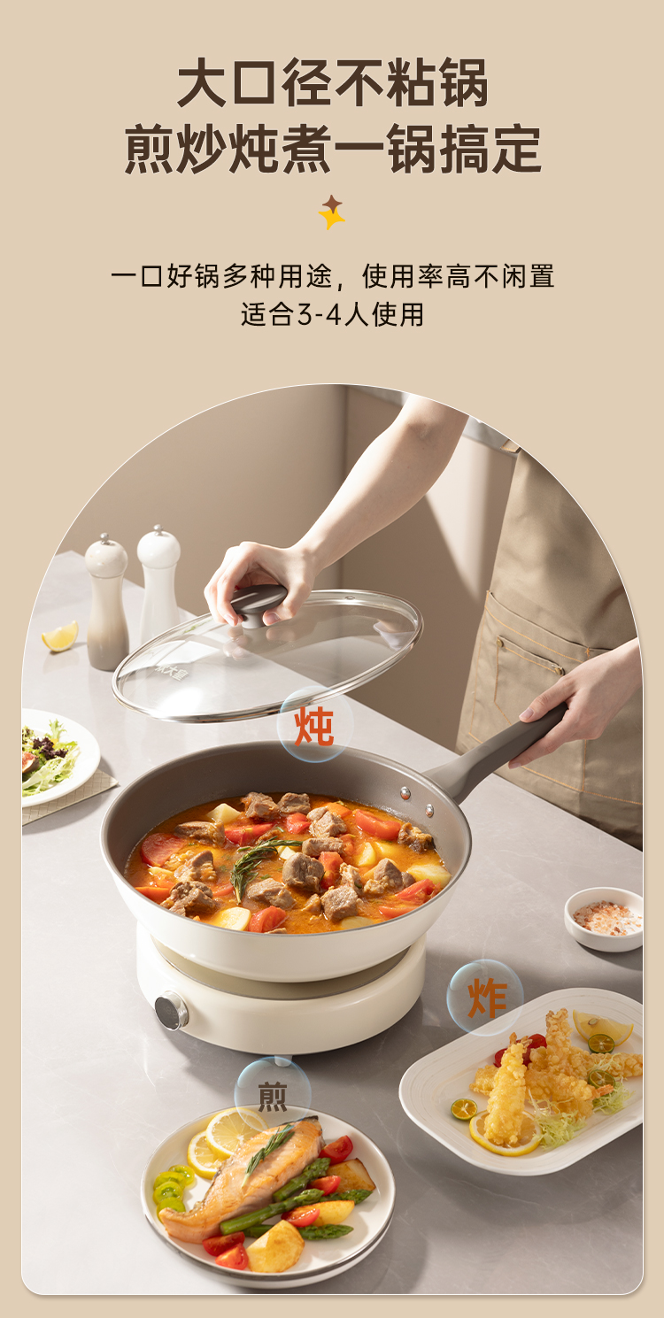 2、加高锅身更实用底径更大容量更大,一口好锅多种用途,使用率高不闲置适合1-3人使用。