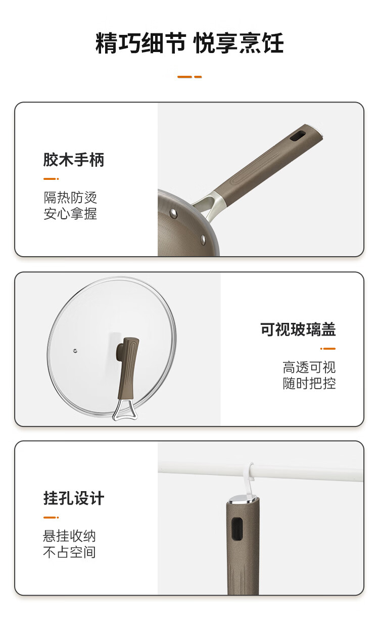 1、纯钛物理不沾无涂层钛金健康不粘锅
