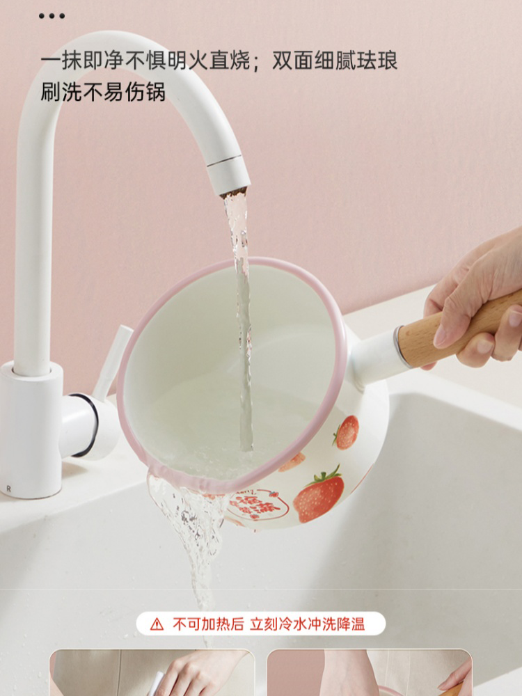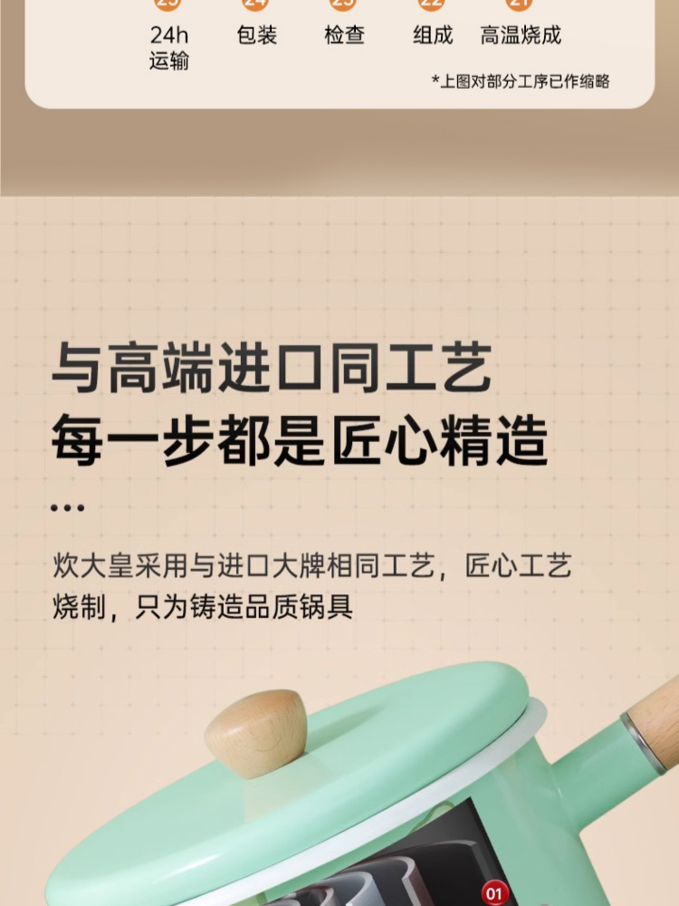 3、内刷不伤锅,外烧不变黑,美锅不娇气,炉灶通用不惧明火、烹饪无小事、细节见匠心。