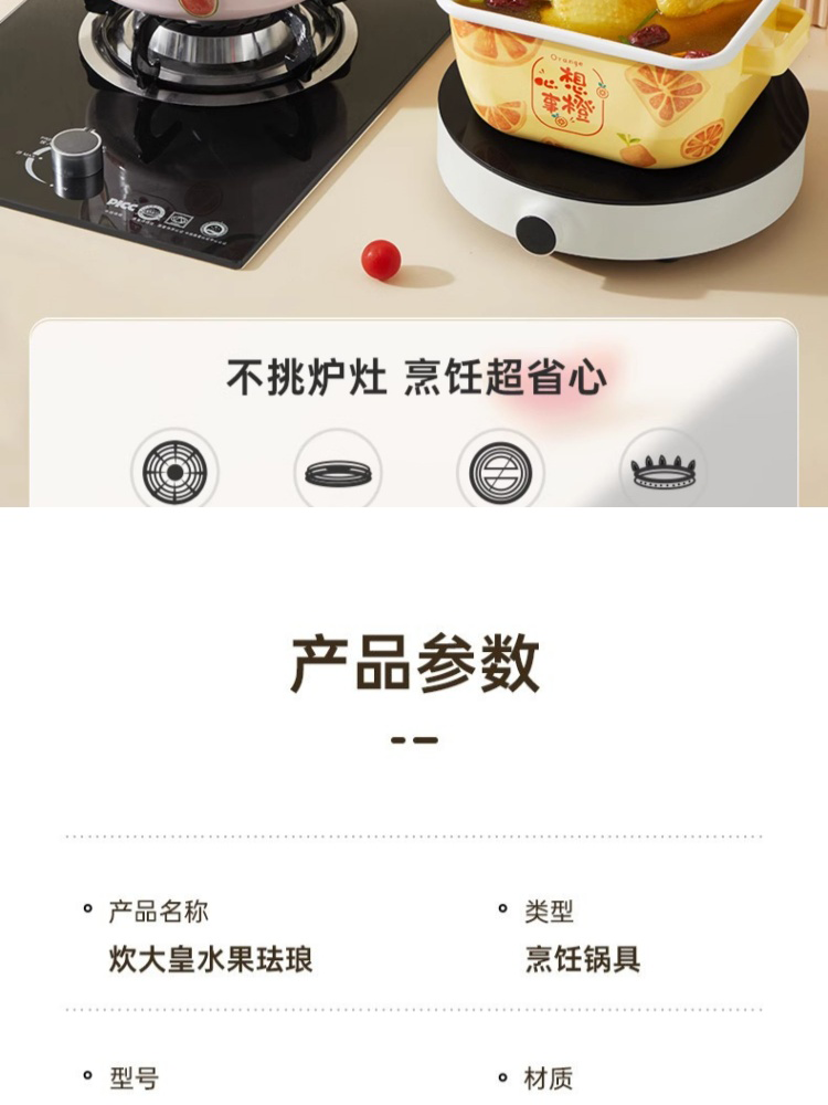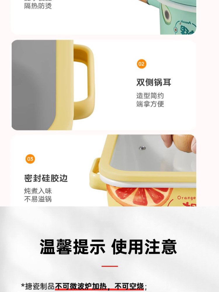 1、福气水果印花,打破厨房沉闷,注入清甜元气,日本进口珐琅釉,安全健康宝宝爱。