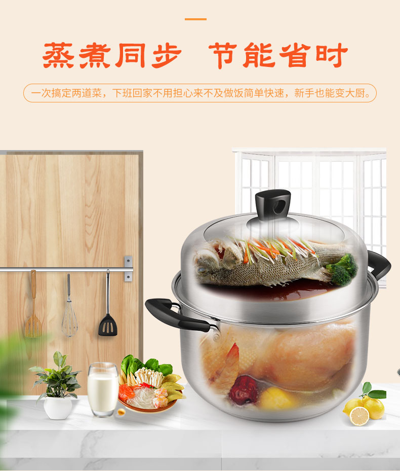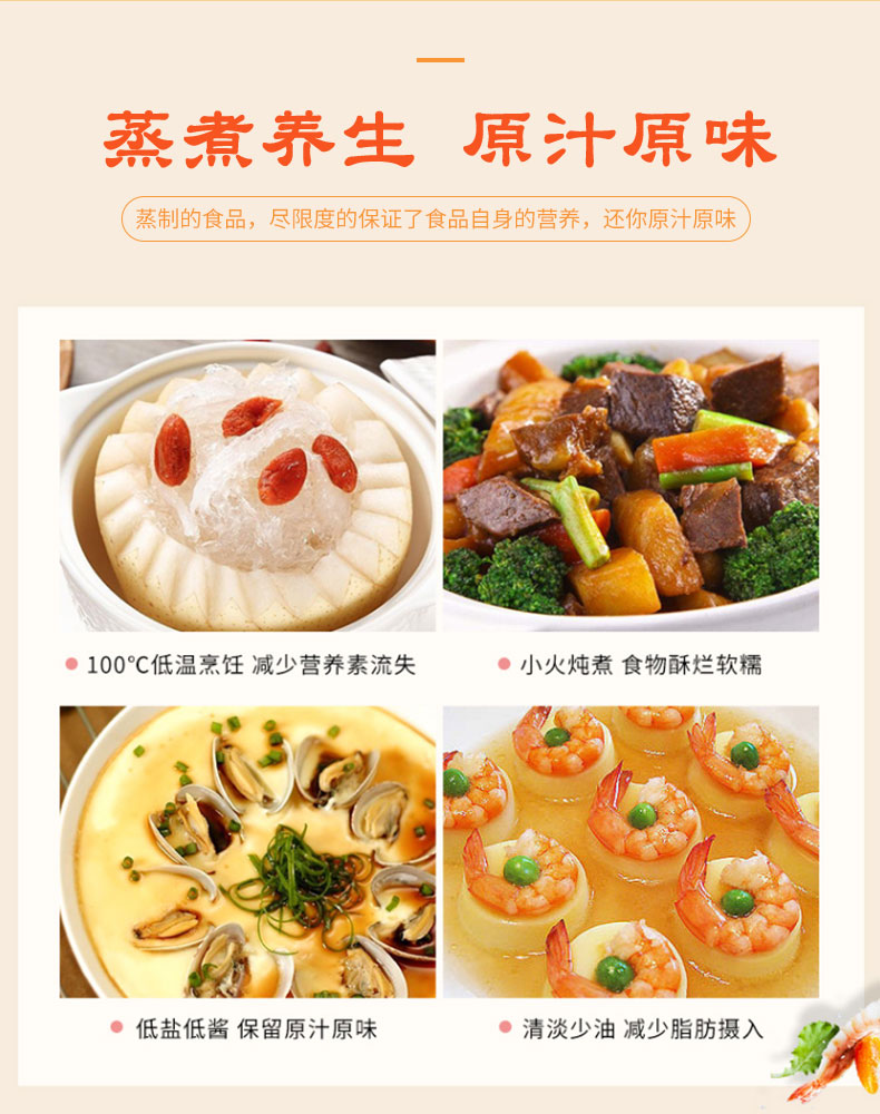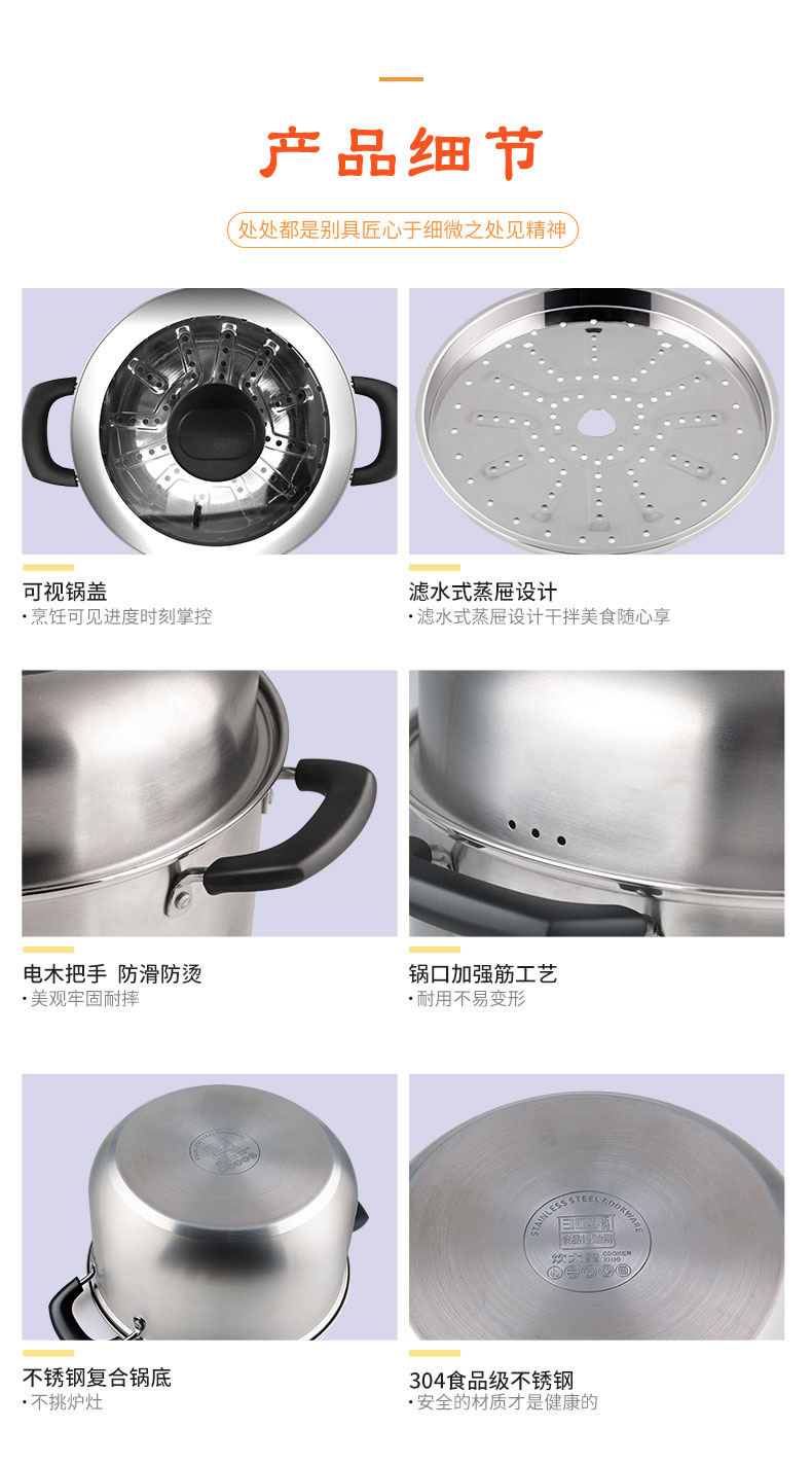 2 加高锅身,加高蒸格,容量升级,更有效防止汤汁溅出;