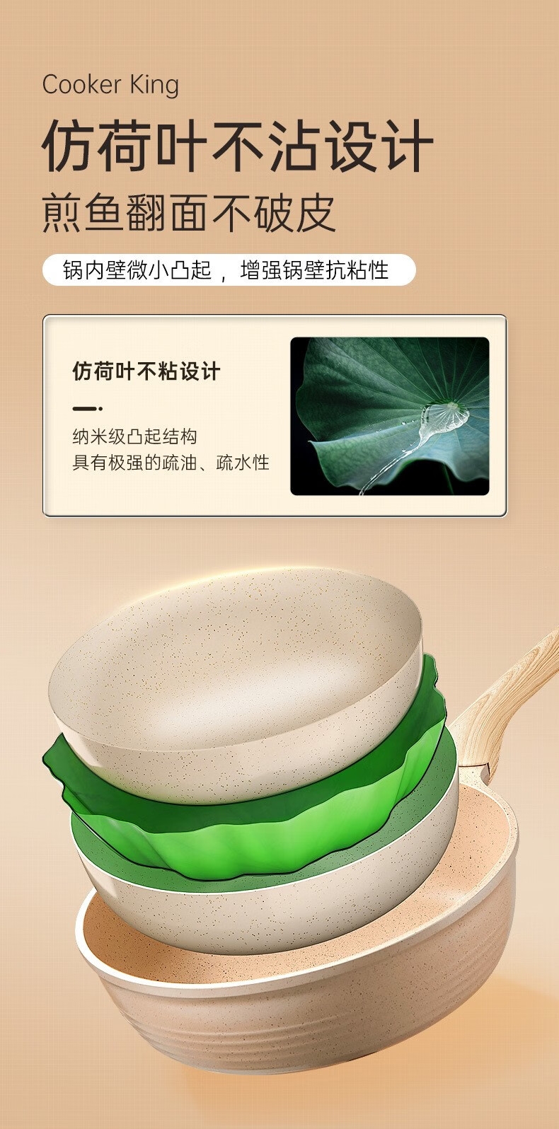 3、仿荷叶不沾设计煎鱼翻面不破皮,锅内壁微小凸起,增强锅壁抗粘性